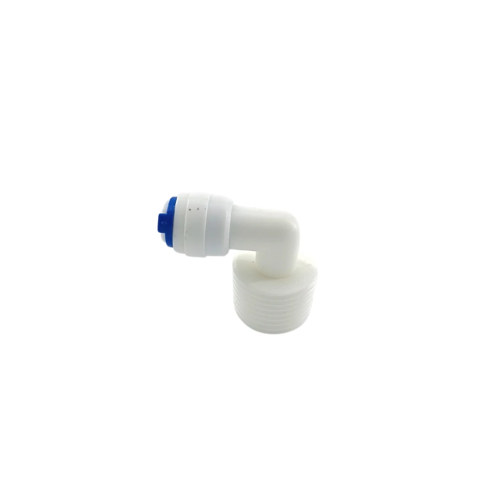 Conexão em L com rosca externa de 1/2 polegada e encaixe rápido para mangueira de 1/4 de polegada