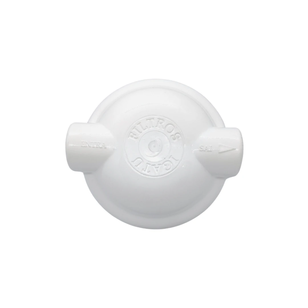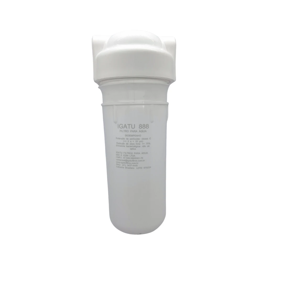 Filtro Igatu completo com entrada e saída com rosca de 1/2 polegada e vasão de 300 litros por hora.