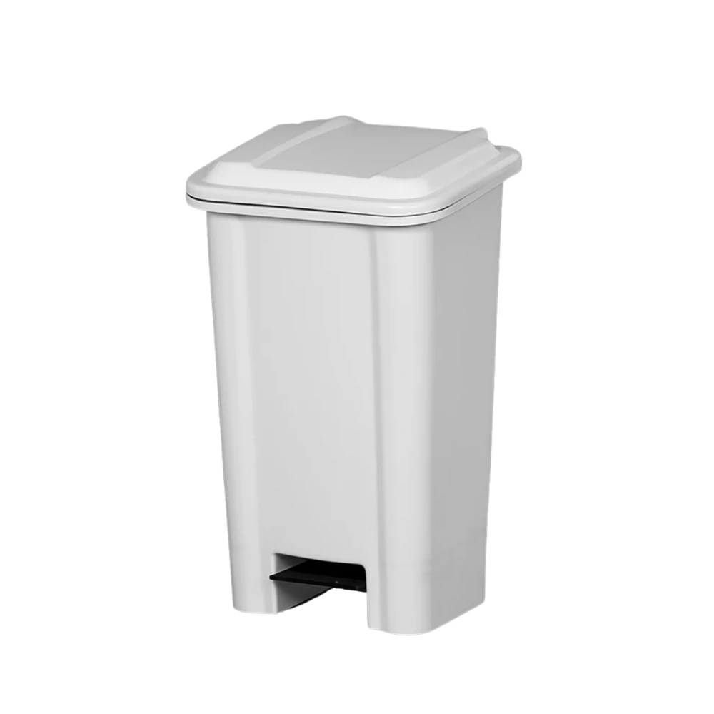 Lixeira plástica branca 100 litros sem rodinha com pedal e aro para prender o saco de lixo