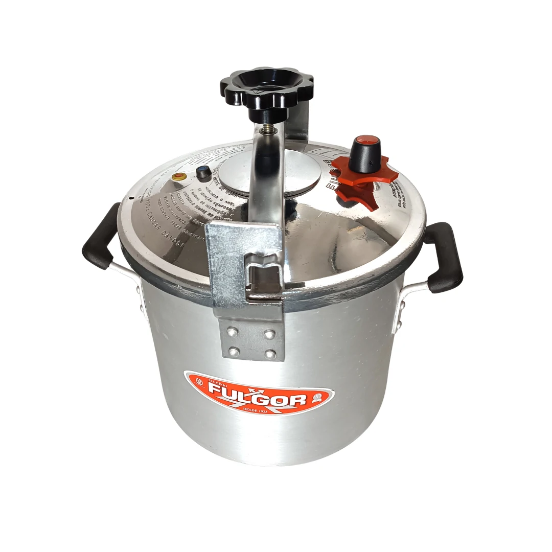 Panela de pressão Fulgor de 25 litros com fechamento externo com manípulo, alça, válvula de segurança e aliviador de pressão